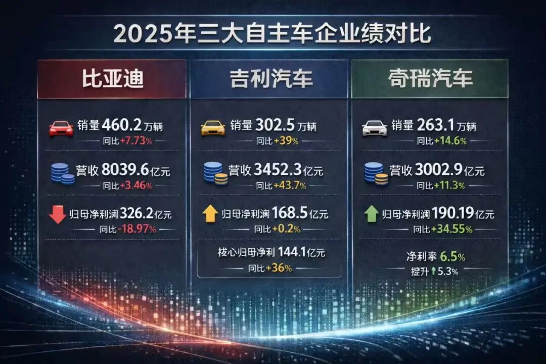 2025年销量460.2万辆,同比增长7.73%;营收8039.6亿元,同比增长3.46%;归母净利润326.2亿元,同比下跌18.97%。