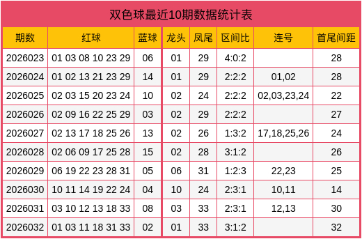 夏师父第2026033期双色球数据统计表