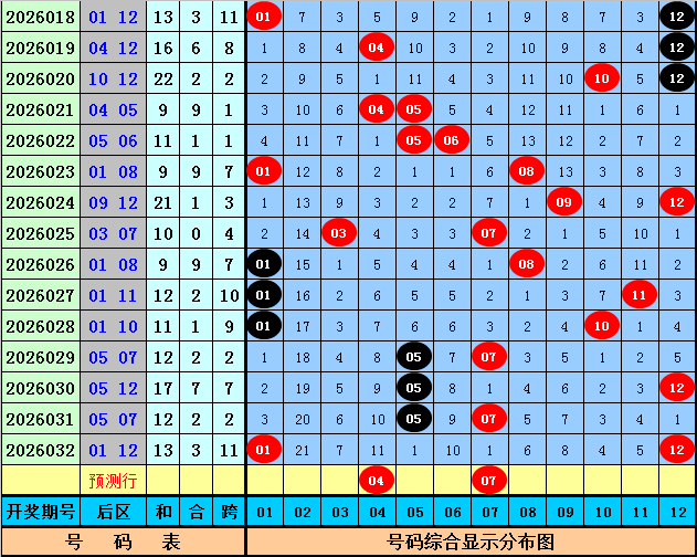 后区5码参考:01 04 05 07 12