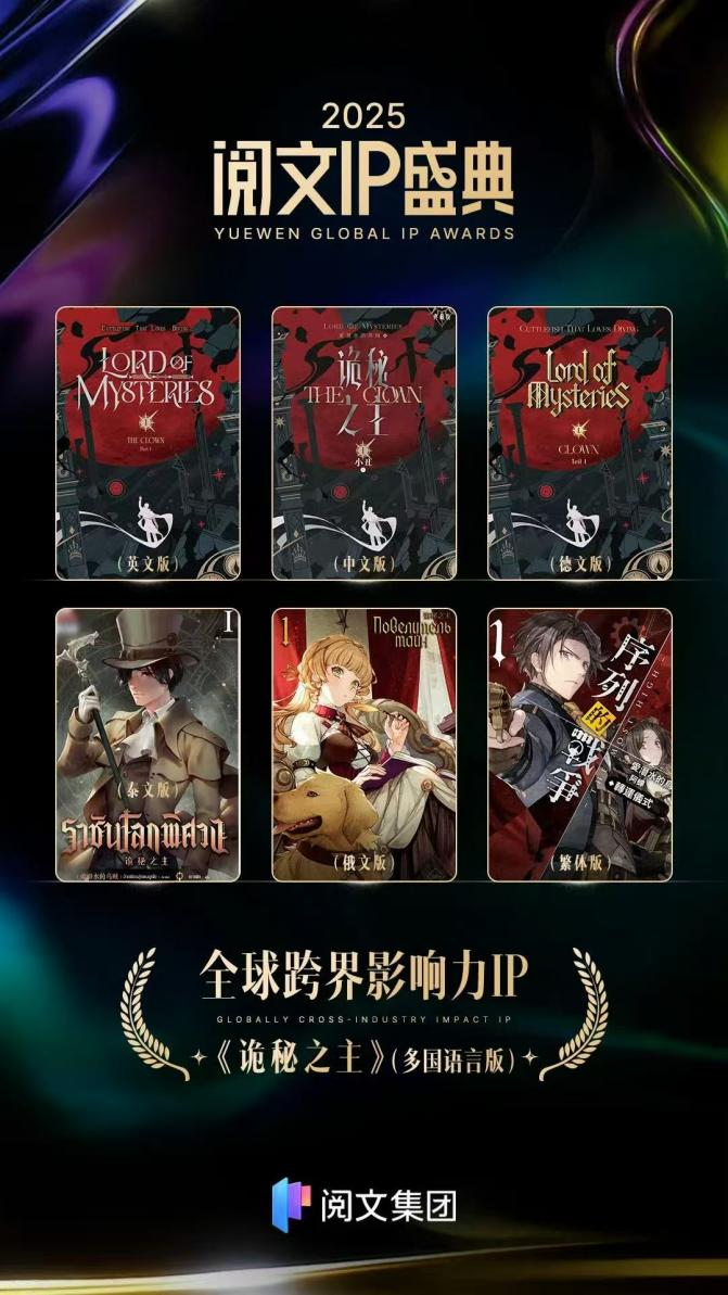 《微妙之主》自2020年完了以来,其IP影响力并未随时分衰减,反而在系统化的运营下握住冲破范畴,展现出强盛的生命力和贸易后劲。该作品不仅是首先汉文网首部平均订阅东谈主数冲破30万的作品,上架761天便成绩了高出9700万读者,平台互动计议量高达亿次。在大家化方面,《微妙之主》已成为中国IP出海的典范。其英文版《Lord of Mysteries》在首先国外的阅读量已冲破5000万,大家中枢粉丝数目高出2600万。作品已被翻译成英语、德语、法语、俄语、泰语等十余种说话版块,在大家范围内累积了深厚的读者基础。