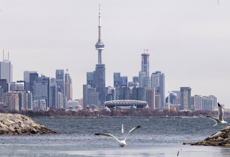 这是3月24日在加拿大多伦多拍摄的多伦多通顺场与市区天空线。 新华社发(邹峥摄)