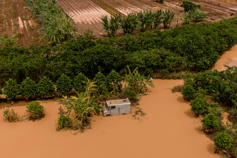 这是3月23日在好意思国夏威夷州莫库莱亚航拍的被急流围困的卡车。 新华社/好意思联