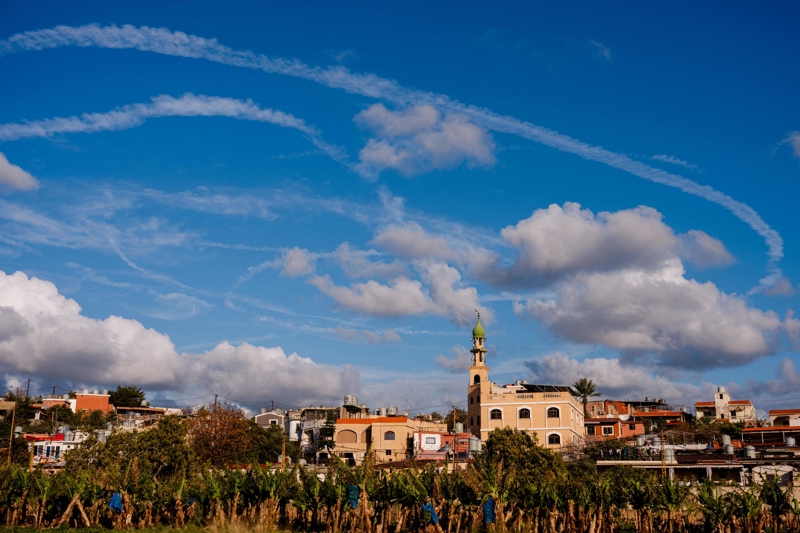 这是3月24日在黎巴嫩南部城市提尔拍摄的以军战争机飞过天外的轨迹。 新华社/法新