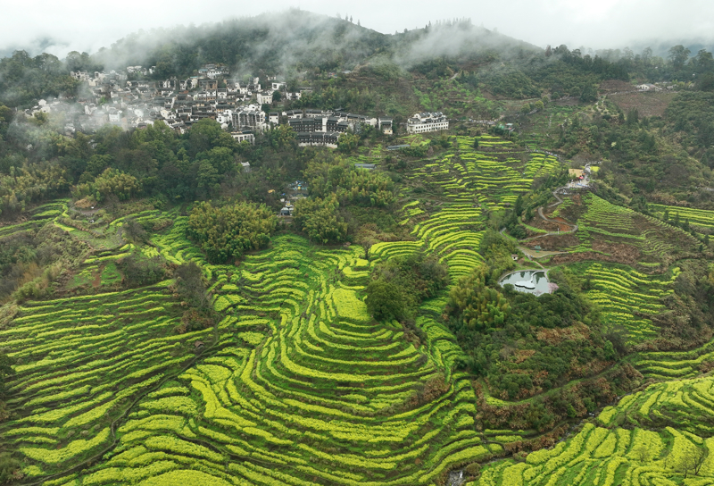 这是3月24日拍摄的江西省婺源县篁岭景区的油菜花梯田(无东谈主机相片)。 新华社记者 万象 摄