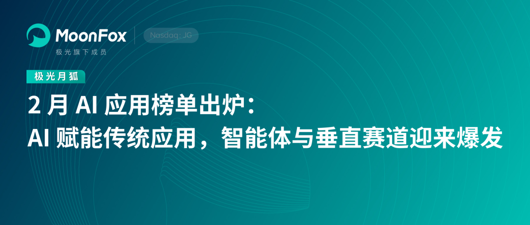 ▶ 极光月狐 | 2 月 AI 应用榜单出炉:AI 赋能传统应用,智能体与垂直赛谈迎来爆发
